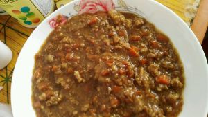 锅中放入植物油,加入胡萝卜丁翻炒,放入适量偏多蚝油,炒熟,(这样就没胡萝卜味了,因为我不喜欢胡萝卜的味道)放入肉丁,把调料依次放入,加适量水,煮熟,味道可以偏重,因为是酱料,可以做肉夹馍,也可拌饭,拌面条。最后加水淀粉炒至浓稠