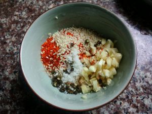 将所有调料放在一个碗里,加入一调羹盐!