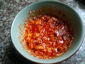 热锅烧油!!!烧热的油泼在调料上,边泼边用筷子搅动!!!