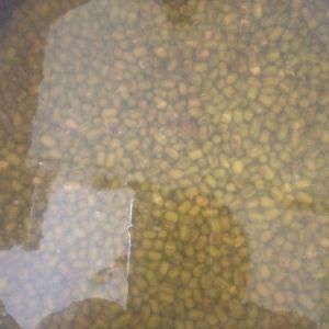 把绿豆泥分成一小个一小个够模具大小就行。里面放入红豆馅就成品了。