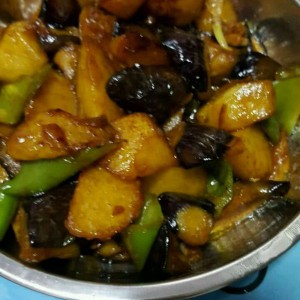 锅里放少许油,因为茄子很吸油,一会炒的时候会出很多油,下拍好的蒜,盐,糖,十三香,酱油,调好之后下土豆茄子翻炒均匀即可出锅。