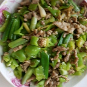 因为不能让孩子挑食,所以我家的菜里蔬菜偏多。。。不过辣椒和葱段的味道真的是很好,我也很爱吃的。。。