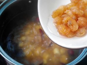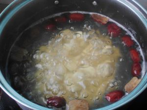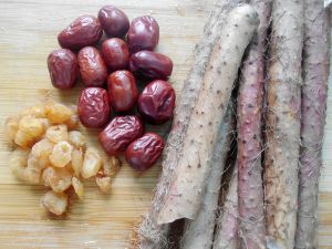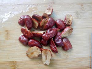 山药和红枣一起下锅,加清水750毫升左右,大火烧开转小火煮30分钟;