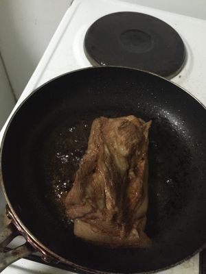 热锅,少许色拉油,放入肉块炸,小心会溅油,我是用锅盖盖着炸的。