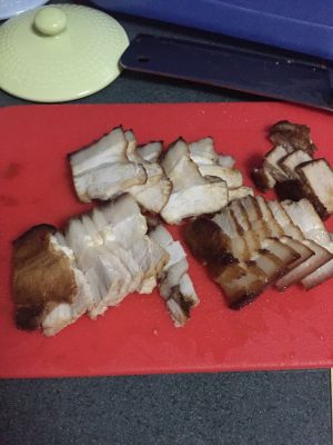 肉块凉后切片,我因为是给儿子吃切得比较小,正宗的是大长片哟!