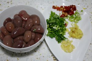 煮熟之后稍稍沥干水分,然后把葱姜蒜末、小米辣、白糖、蒸鱼豉油、香菜等各种调料放入装兔腰的盆子里面,拌均匀,然后,放置半个小时,让兔腰入味,最后装盘即可。