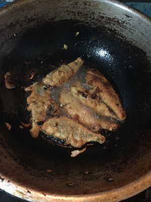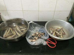 收拾鱼,不多说了,弄干净哦。然后头打算炸2小时,把鱼用盐,料酒,葱姜,腌制上。