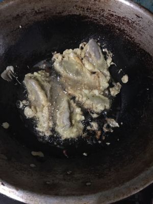 锅里放油,比炒菜要多一些。小黄鱼放入糊糊碗里两面沾一下就可以,不用沾太多,放锅里炸。