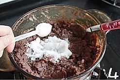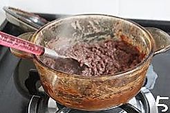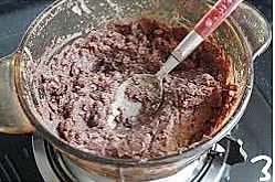 如果一开始在锅中加入的水太多的话,可以倒掉多余的水分,边搅拌边将红豆碾碎。