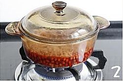 将红豆放入锅中,加适量清水用大火煮开,然后转小火将豆子煮烂。