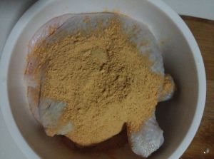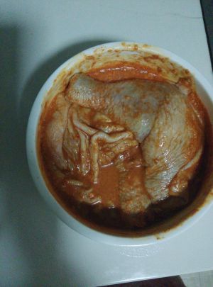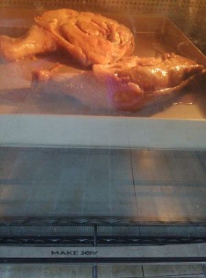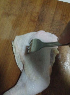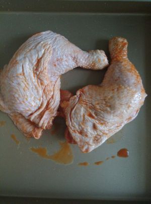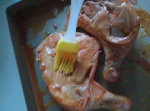 20分钟后取出再刷点浸泡鸡腿的调味汁和蜂蜜水