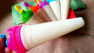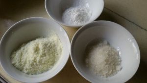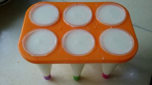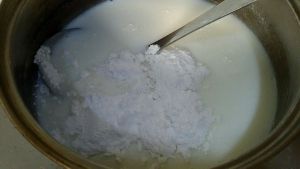 奶粉搅匀后,倒入糯米粉,同样方法快速拌匀。(加入糯米粉可以让冰棒的口感更糯,颜色更白)
