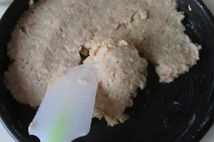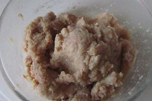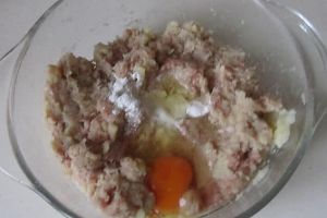 再加入肉馅, 鸡蛋, 生粉, 胡椒, 盐等调味料放入其中;