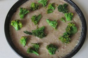 在土豆泥饼上均匀的铺上焯好水的西兰花;