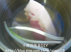 将肉整块放入冷水时,加入拍破的姜,葱及料酒,煮20分钟,将肉整块放入冷水时,加入拍破的姜,葱及料酒,煮20分钟,捞出肉,留汤