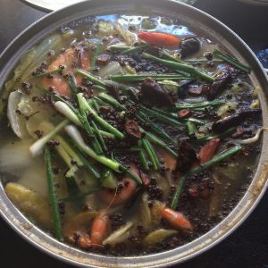 锅里放油烧5成热,加入花椒,辣椒,蒜片炒至花椒脆了即可