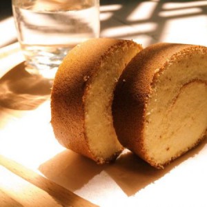 用擀面杖帮助卷卷,卷好先不要急着打开切,先放置一会定型,这样才能切得漂亮