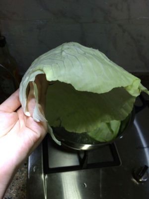 剥下完整的高丽菜叶子洗净