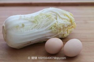 鸡蛋打散成蛋液,大白菜切大段,香葱切小段。