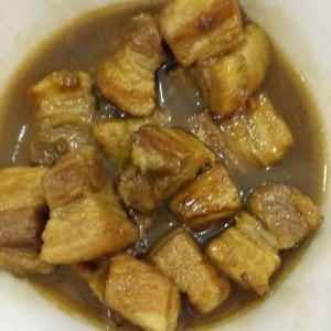 经过高压锅压制后,把姜片等夹出去掉。肉已经很烂了,这时汤汁还不稠,我用的收汁提味功能把汁又收了一下,没有老公做的那么色香味俱全,味道还不错,起码可以解馋,哈哈!
