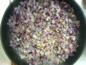 洋葱炒至半透明时倒入番茄,边压碎边炒。