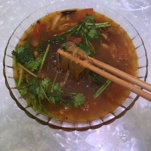 放红薯粉,把调料也放里,盐,生抽,胡椒粉,最后放醋和鸡精