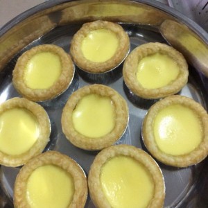 看吧,下陷的程度很小,很饱满的蛋挞。