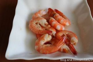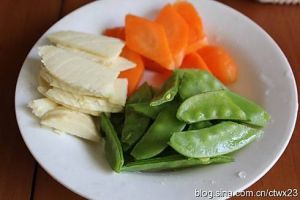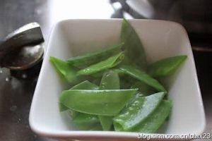 烧开一锅水,入荷兰豆氽烫二分钟捞出