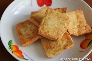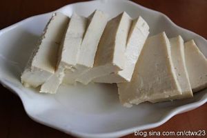 卤水豆腐切片(如图所示,不要太厚也不要太薄哦)