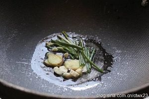 另起锅预热,入少量油,油热后煸香葱段、姜片、蒜末