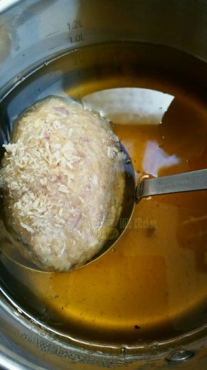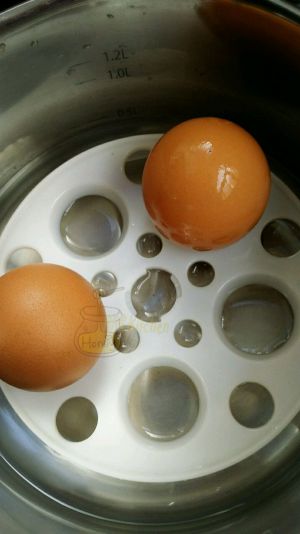 鸡蛋煮半熟,捞出浸入冷水备用。(半熟炸好後是溏心蛋,不喜欢的话这里鸡蛋也可煮八分熟)