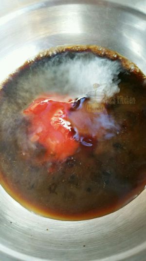 酱油、蚝油、番茄酱、水、淀粉混合,小火煮至浓稠