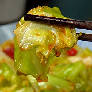 加点醋包菜的口感更脆,再加盐和糖调味,继续大火翻炒入味,但包菜既能断生还不会变软出水,最后沿着锅边淋入蒸鱼,豉油鸡发出国企,快速翻炒,几下后美味即成