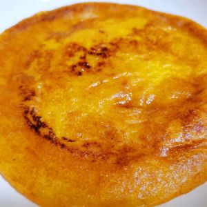 反复翻面,边压边翻面烙至两面煎黄,饼鼓起后就可以起锅,