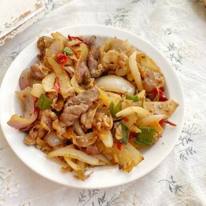 将蒜瓣、姜末和洋葱倒入锅中,爆炒至洋葱软烂;