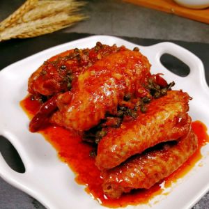 鸡翅酱好捞出,起锅烧油,油热放豆瓣酱。
