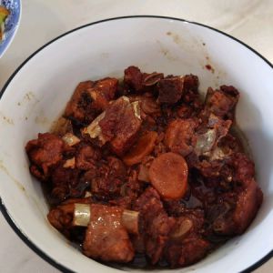加入湖之酒中火煮3分钟,期间加入生抽,老抽、适量盐调味,炒匀,让排骨充分上色入味,尝一下是否合自己的口味。接下来要入电压力锅炖煮,因为电压力锅水分基本不会减少,所以自己根据锅中汤汁多少把握,如果汤汁较多就多煮一会再入炖锅。