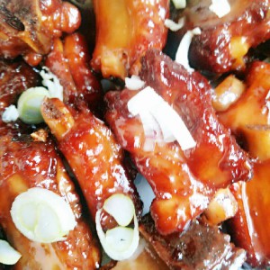 煮好的排骨用一勺老抽,两勺生抽,一勺料酒,两勺醋腌30min