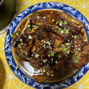四勺生抽,四勺陈醋,一勺寿司醋(这个可以不放,或者换成白醋),三勺糖(糖可以少放,炒糖色的时候也加了冰糖),一点老抽,一勺酱油
