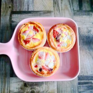 倒入筛好的蛋挞液,放进烤箱200度烤20分钟