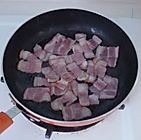 锅内热油(油不要多,因为煸培根时还会吐油),六成热时,下入培根煎黄盛出备用