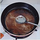 用锅内的余油将洋葱末煸香,加入红酒,高汤,百里香,煮开