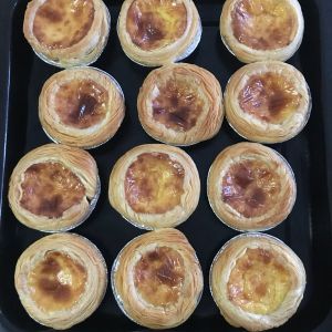 烤箱210度预热10分钟,中下层210度25分钟。美味的蛋挞就烤好了。放中层烤出颜色再换到中下也可以,简单又美味。初次做的时候要熟悉自家烤箱,避免烤糊。