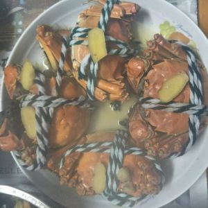 蒸蟹的过程中,可以制作醋汁,把姜蒜香菜放入小碗中,加入陈醋,生抽,耗油。