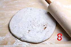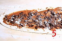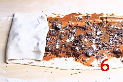 再撒杆碎的红糖在上面,撒少许干面粉在上面,防止红糖化了流。