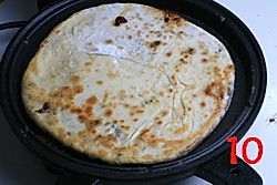 翻面前刷少许油,两面烙熟即可,取出切块。