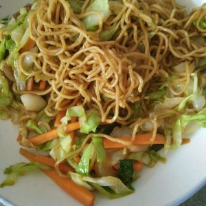 锅热放油放葱末炸香,中火放圆白菜洋葱胡萝卜上面放面条放些甜面酱(根据口味放)不能搅拌,盖上锅盖中火焖两分钟转大火放蒜末翻炒最后放点香油就可以出锅了