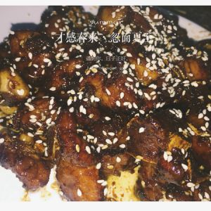 这个就是到后面收汁的时候啦 故意停火拍了张照片。汁都收完了,然后中小火 像炒糖一样炒一下,出现一点焦香就可以关火了(如果不喜欢 就直接收汁就好了)前面加了油,不会很容易糊的,放心。