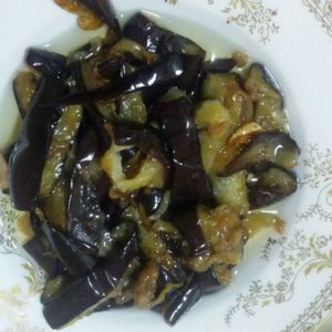 重新起锅,放入姜蒜爆炒出香味,倒入生抽,盐,水淀粉,熬的粘稠把茄子放进去,翻炒几下,出锅。