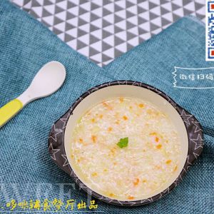 加入香菇粉和鸡肉松的米粥,透着屏幕散发着香味